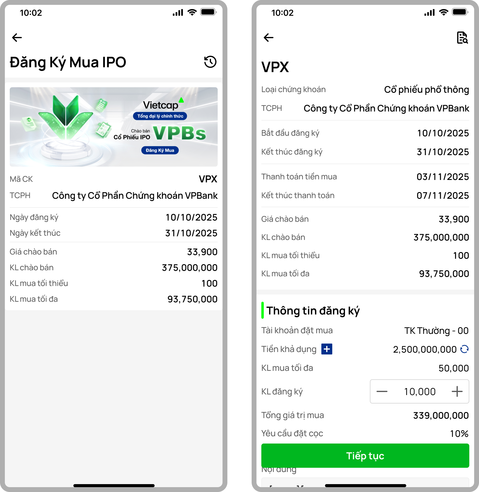 - Sau khi chuyển tiền, Người dùng đăng nhập vào ứng dụng Vietcap hoặc Web trading và thực hiện đăng ký mua.