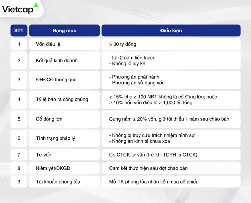 3. Điều kiện chào bán cổ phiếu lần đầu ra công chúng (IPO) tại Việt Nam