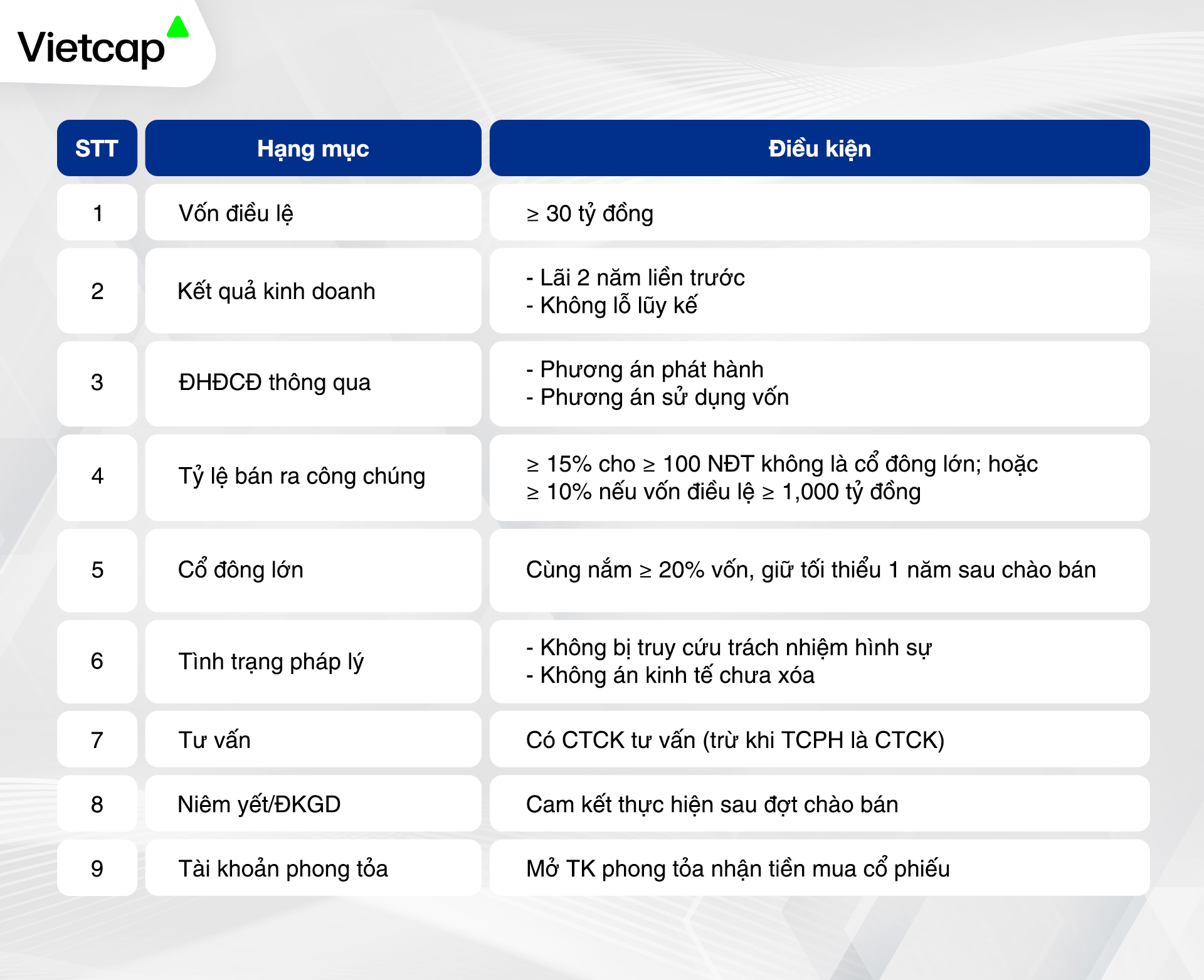 2. Điều kiện Chào bán lần đầu ra công chúng IPO