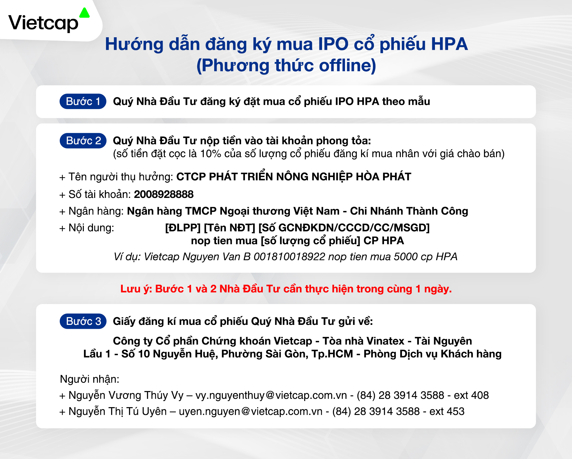 Hướng dẫn đăng ký mua IPO cổ phiếu HPA (Phương thức offline)