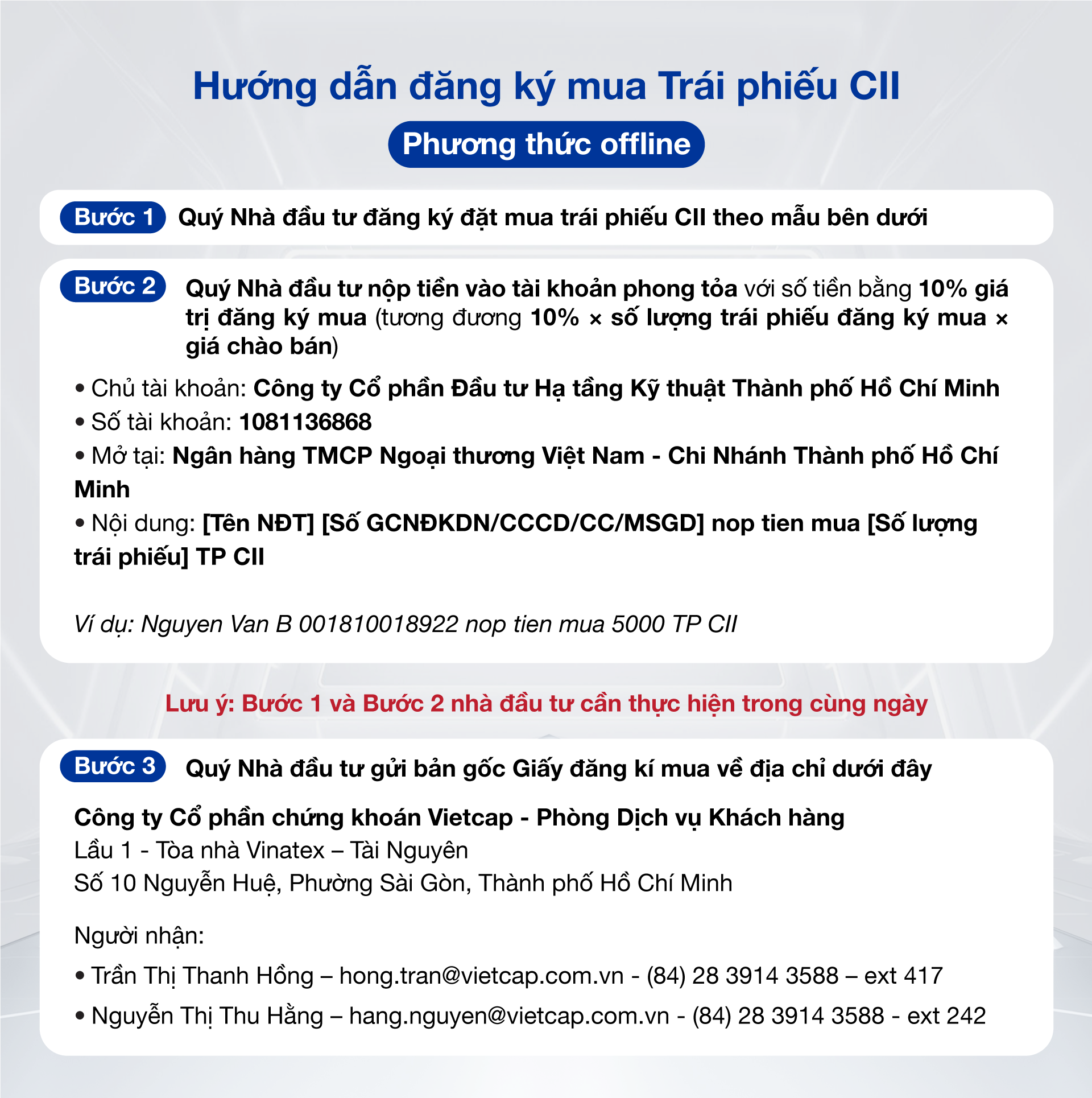 HƯỚNG DẪN ĐĂNG KÝ MUA TRÁI PHIẾU CII (PHƯƠNG THỨC OFFLINE)