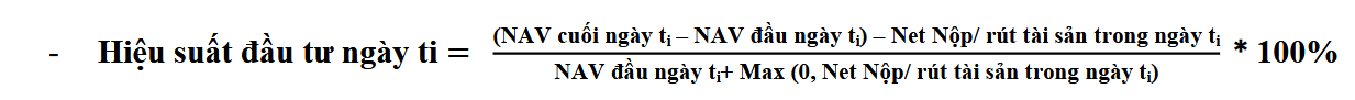 [(1 + Hiệu suất ngày t0)(1 + Hiệu suất ngày t1)…(1 + Hiệu suất ngày tn)]-1