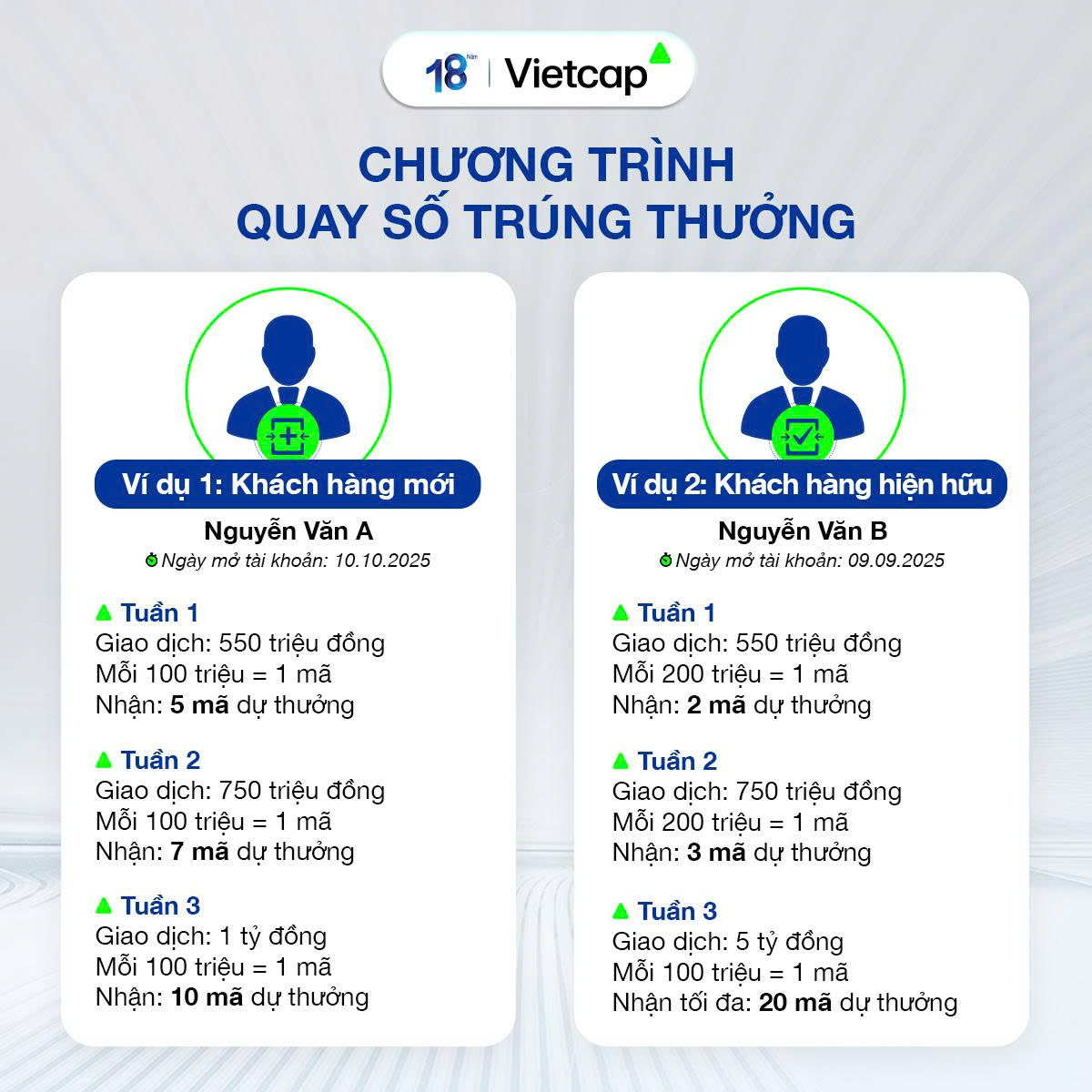- Khách hàng hiện hữu (KH HH): Khách hàng đã mở tài khoản giao dịch chứng khoán tại Vietcap trước ngày 06/10/2025 và có giao dịch bất kỳ trong vòng 01 năm gần nhất 07/10/2024 – 06/10/2025).