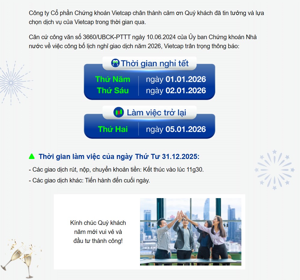 Thông báo lịch nghỉ Tết Dương Lịch 2026