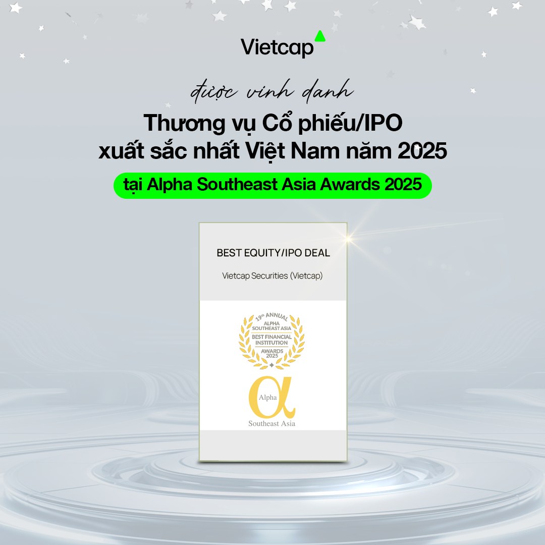 Chúng tôi trân trọng chia sẻ một dấu mốc đáng tự hào vừa qua: Vietcap được Alpha Southeast Asia vinh danh với giải thưởng “Thương vụ Cổ phiếu/IPO tiêu biểu của năm tại Việt Nam 2025”, ghi nhận vai trò Đơn vị Tư vấn IPO và Đại lý Phân phối chính trong thương vụ IPO trị giá 480 triệu USD của Công ty Chứng khoán VPBank (VPBank Securities JSC).