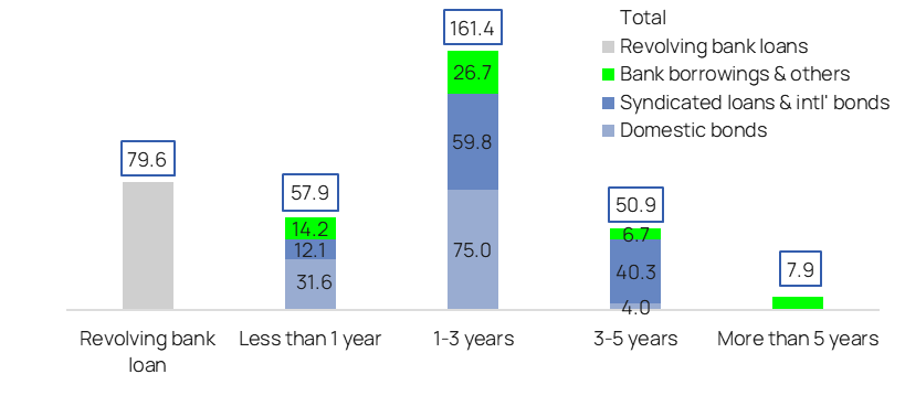 Hình 2: Cơ cấu tổng nợ vay của VIC theo thời gian đáo hạn (nghìn tỷ đồng) tính đến cuối quý 1/2026